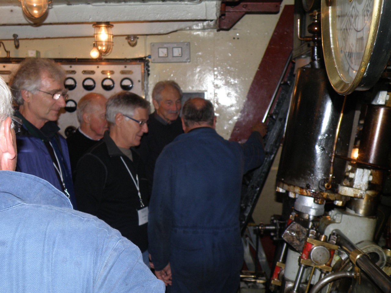 David Smith, Ingvar Johansson, Alfred Kraus and others, inspecting the engine